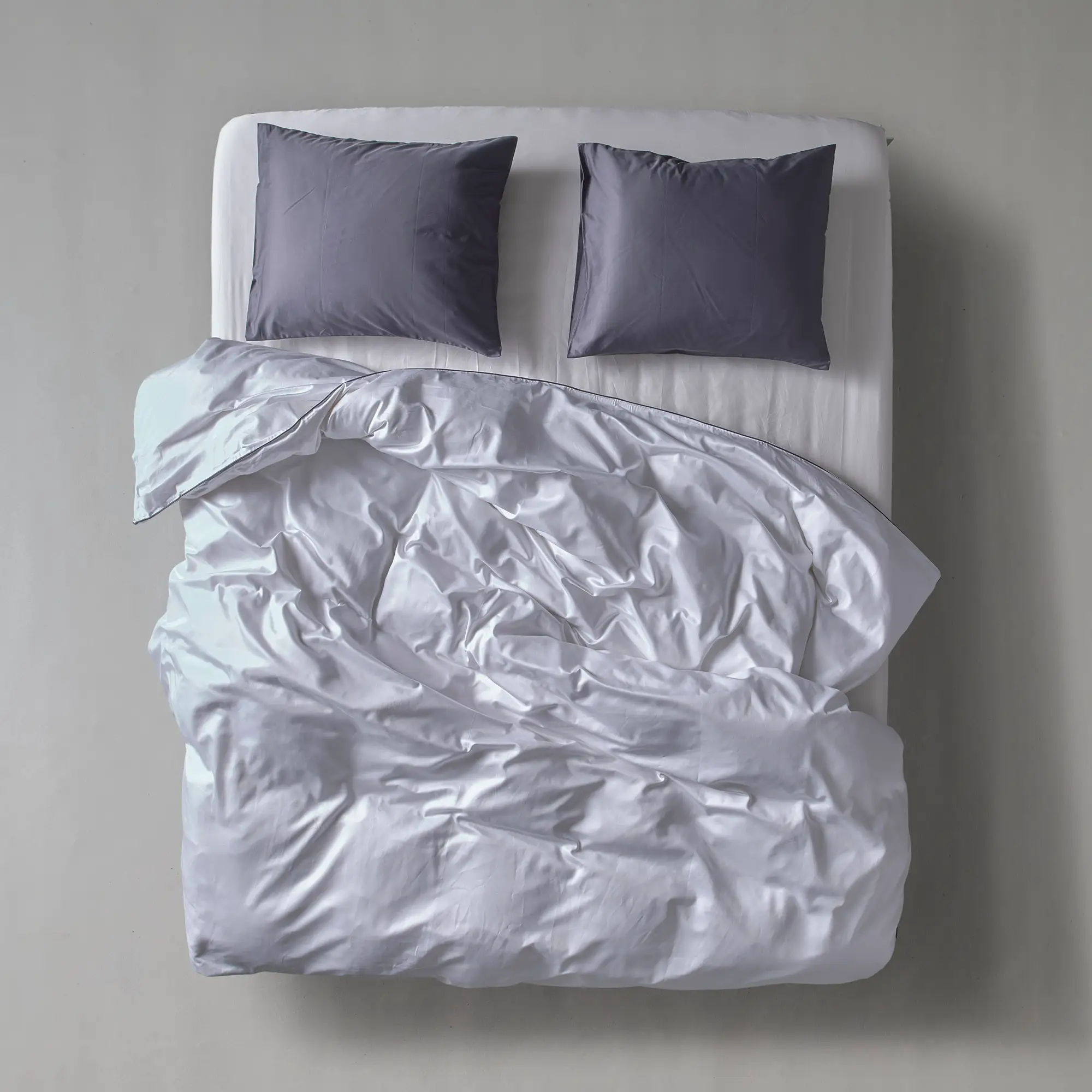 Weißer 500 TC Sateen mit dezentem dunkelgrauem Paspel – zeitlose Eleganz.