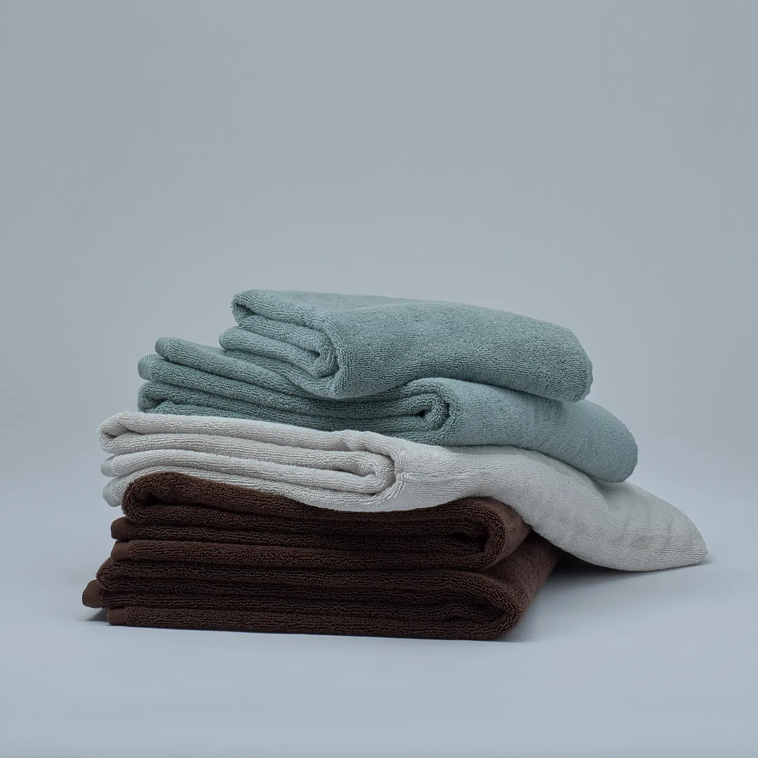 Die Handtücher sind aufgrund ihres strapazierfähigen Aufbaus sehr besonders. Das Verweben von zwei Garnen zusammen schafft ein stärkeres Gewebe, das Feuchtigkeit effizient aufnimmt, während es dennoch weich auf der Haut bleibt.